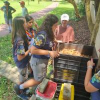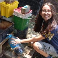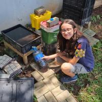 A composteira reduz resíduos e produz adubo e chorume para hortas. Montada em 05 de maio de 2024, recebe adubo em 07 de maio. O chorume, iniciado em 21 de maio, atinge 28 litros em 26 de junho e deve ser diluído antes do uso. Finalizado em 01 de julho de 2024, o projeto será reavaliado em 15 de fevereiro de 2025. Com capacidade de 128 litros, promove sustentabilidade ao reaproveitar matéria orgânica