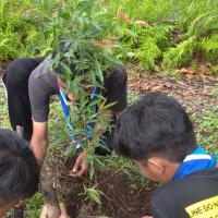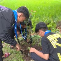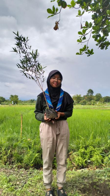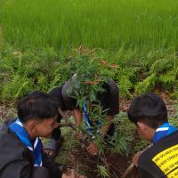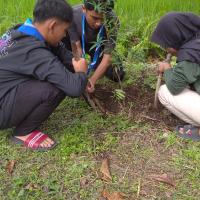 dalam upaya mengurangi pemanasan global, kaum anak anak muda pencinta lingkungan melaksanakan kegiatan menanam pohon di lingkungan sekitar