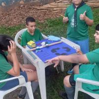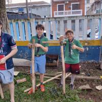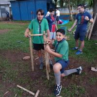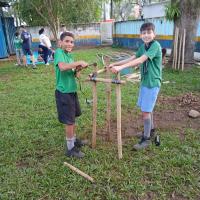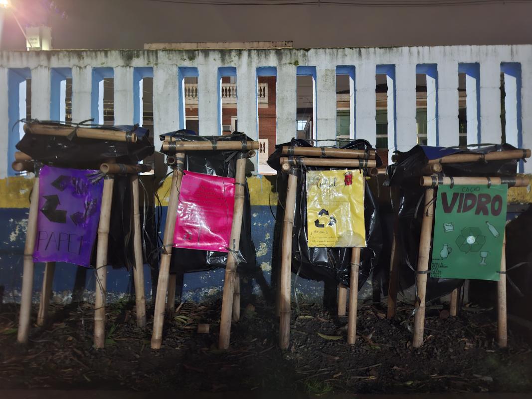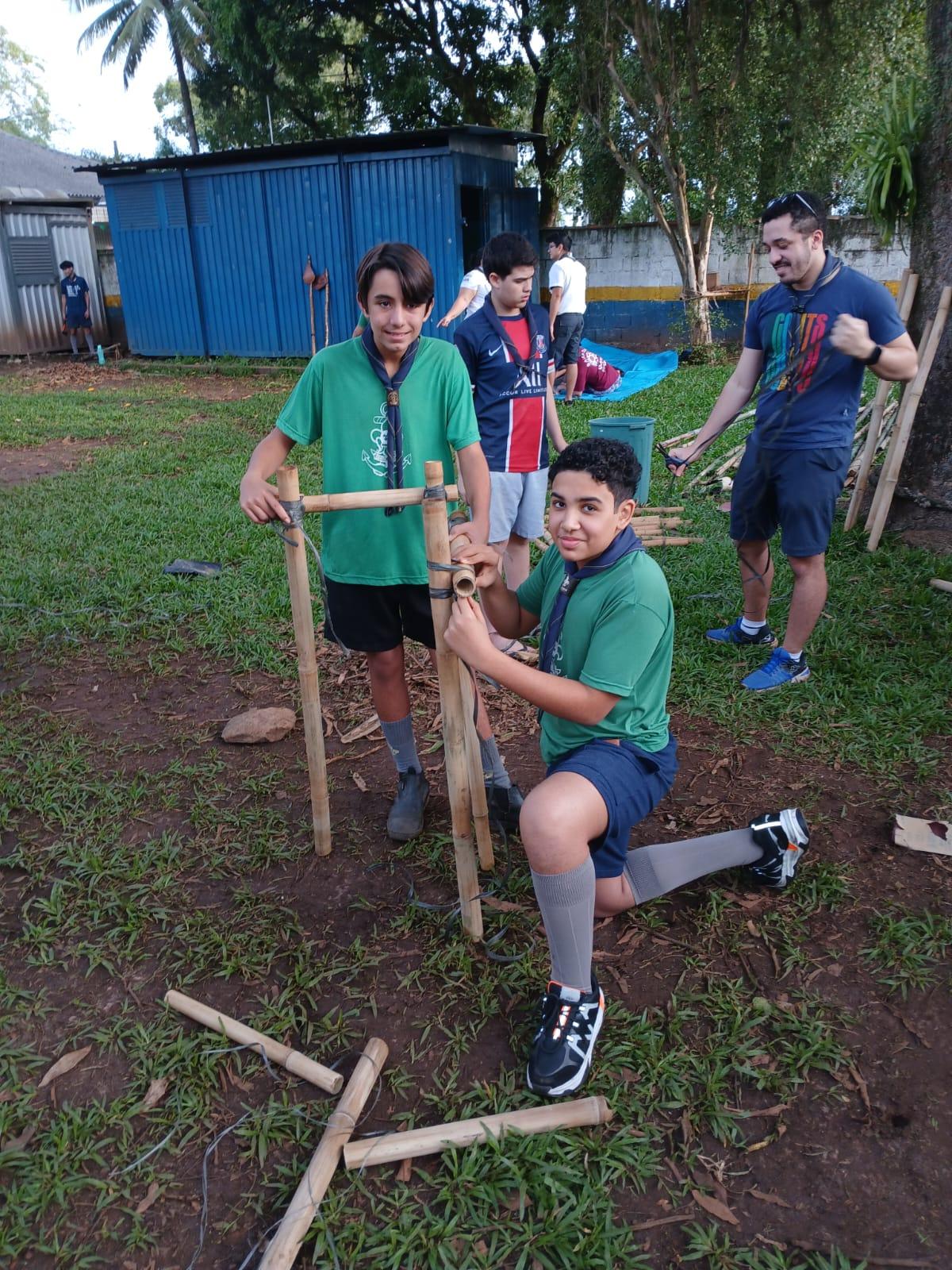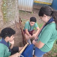 A Tropa Escoteira Marlin desenvolveu seu primeiro projeto sustentável, criando lixeiras de lixo reciclável feitas com bambus antigos e poucos materiais. Cada patrulha montou uma lixeira com placa identificadora, e a ferramenta 5W2H guiou o planejamento.