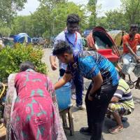 We are collectively collaborating, specifically as individuals from the Crystal Open Scouts Rover team, to contribute to the execution of this endeavor. Roughly 12 members of the Rover team have engaged in this initiative over the span of two days. We are dispersing chilled beverages among regular citizens and travelers to mitigate their distress. Through this initiative, we have managed to offer this assistance to nearly 620 individuals solely on the second day.