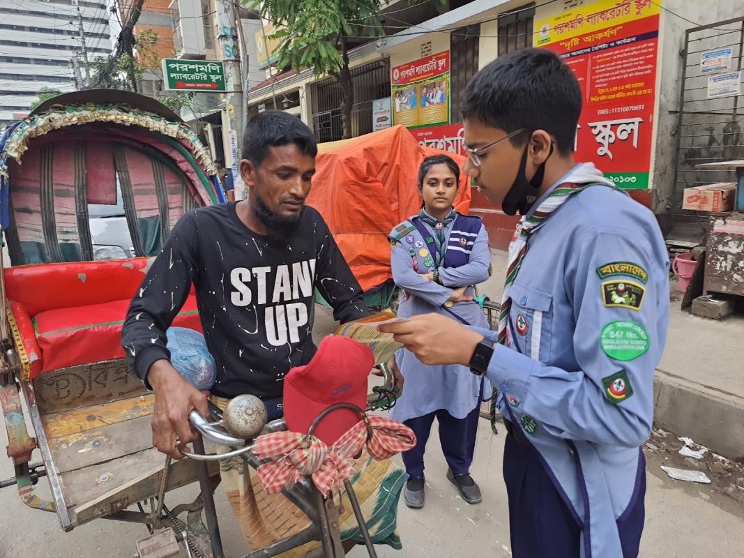 Our scout group made people aware about road safety and gave leaflets to drivers at sector-7 in Uttara in Dhaka.
