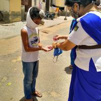 unit leader suman charan dwara ghar ghar jakar hand sensitizer karwaye gye.sabji ,chara wale ,rahgiro ko hand sensitizer karwa kar mask diye.