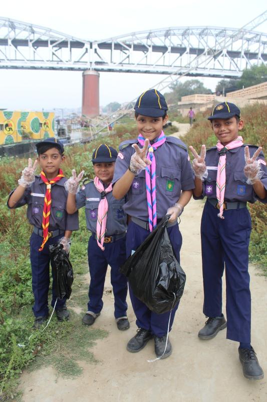 On 31st March Sunday we Go to a Famous Ghat on Varansi (Namo Ghat) .To make people aware on cleanliness of water we do a street play with the message of cleanliness. we make slogans after this we collect more then 10 kg of plastic and garbages near Ghat .