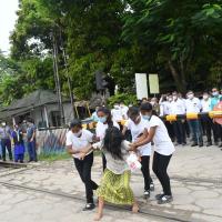 In this programme members of Bharat Scouts and Guides, Northeast Frontier Railway, Tinsukia District Association performed a Street Play at Level Crossing Gate No. 47-DD(NTSK-TSK) and demonstrated Safety Measures to be followed when crossing a Level Crossing and distributed pamphlets at different level crossing gates to all the vehicles containing all the informations.