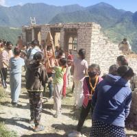 People of the village were having tough time getting labor to demolish the old guest house, so that they can build the new guest house.