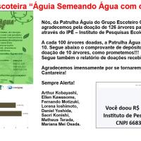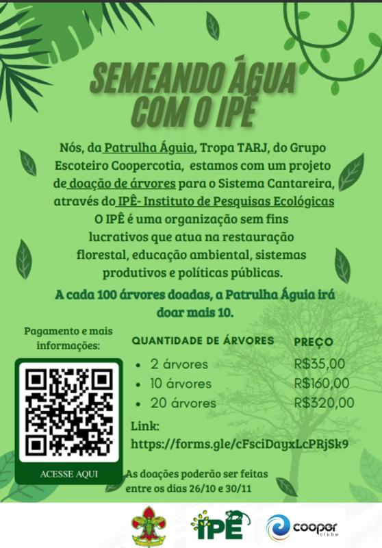 A patrulha águia viu que o mundo está sofrendo com muitos problemas ambientais, como por exemplo o desmatamento, aumento do nível das águas, e buscando combater isso, e aproveitando para conquistar a insígnia do meio ambiente, resolvemos fazer a nossa parte. assim pesquisando e chegando no IPÊ- Instituto de Pesquisas ecológicas.