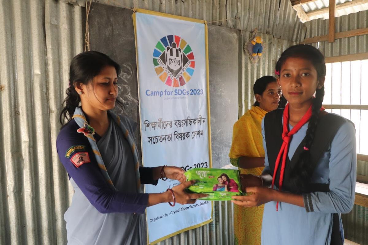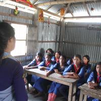 Among women and school-going girl students in the scout pasture of Lalmonir Hut.