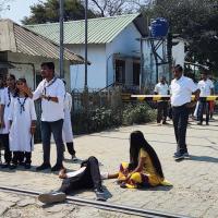 After Taking necessary permission from our district officials we members along with the officials of the Northeast frontier Railway, Tinsukia Division conducted street plays at approx 15 authorised and unauthorised level crossing gates from Dibrugarh to Margherita (82.6kms). We also talked to the people to aware them about their safety and about the laws that prohibits the crossing of a closed level crossing gate.