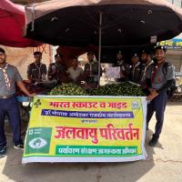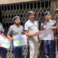 To make our area plastic-free, all of us Rovers and Rangers made two cloth bags each, so small items from the market could be carried in them instead of plastic. To spread this message, we also distributed these bags door-to-door and in the market.