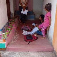 Ranger Arghyarupa samantaray , teaching some poor children .