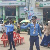 I cleared the traffic jam with great joy and smile. I used my talent and labor to control the traffic in the road.