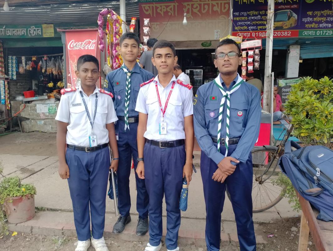 When the police went on strike due to the mass uprising in Bangladesh, there was an extreme crisis in controlling traffic congestion on various roads in the country. In this critical situation, we 5 scout members stepped forward with responsibility. As a result of our initiative, traffic congestion has reduced to some extent and the movement of the common people has become easier.