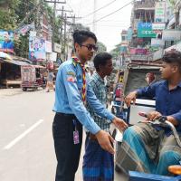 It was a bit difficult to implement. But we were able to do it with the efforts of all the members of our Bond Mukto Scout Group. Our Sonagazi city is small in size but there are more vehicles and motor rickshaws here. They don't obey traffic laws. We urge them to obey the traffic laws and through this we are able to prevent traffic jams.
