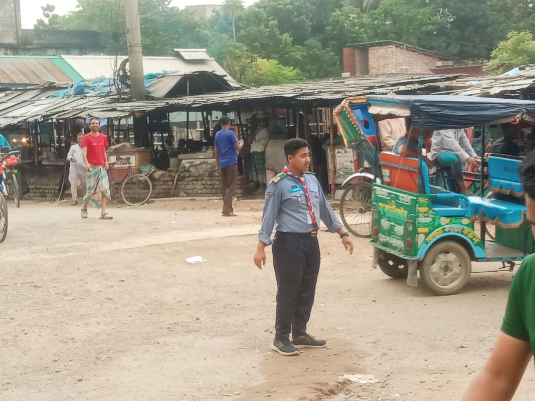 In August, when the police went on strike as a result of the popular uprising in Bangladesh, there was a severe crisis in traffic control on various roads in the country. In this critical situation, we members of Crystal Open Scouts step forward with responsibility. We work to maintain normal traffic flow with the responsibility of traffic control at various junctions of the country.