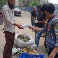 With the help of Patrol Leaders Md Mir Ashraful Islam and Rafiqul Islam Uday, and Rover Scouts Md Raiyan Mollah and Umid Hasan from Samatat Open Scout Group, we distributed educational leaflets on trash management in Shantinagar, Shantibagh, and New Eskaton under the project TrashTalk: Clean Today, Green Tomorrow.