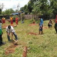 Oriya expatriates at the flood shelter protection center at Arjunpur Unnit High School planted more than 40 trees on the school premises.