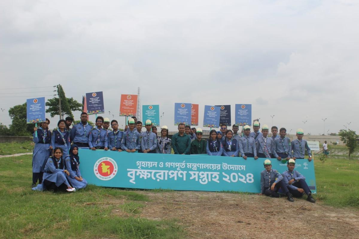 To effectively achieve the tree plantation objective, scouts and rovers from Rajuk Uttara Model College Scout Group took part in the National Tree Plantation Week (8 to 14 July 2024) Program, which was organized by the governmental body Rajdhani Unnayan Kartipakkha (RAJUK) as part of an initiative led by the Ministry of Housing & Public Works of the People's Republic of Bangladesh.