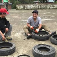 creation of flowers pots out of old tyres. it was manually created into different shapes and painted beautifully.