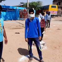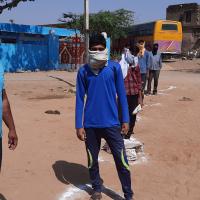 खेतड़ी के राजोता ग्राम पंचायत के चिरानी गाँव मे उचित मूल्य की दुकान पर सभी ग्रामवासियों को सोशल डिस्टेंस के बारे में जानकारी दी व 3 - 3 मीटर की दूरी पर गोला करके सभी को खड़ा किया व राशन डीलर को भी सोशल डिस्टेंस से राशन वितरण के लिए निवेदन किया ।।