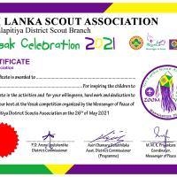 Nawalapitiya District Scout Association orgnized a Vesak celebration in the district with the participation of District Scouts. There were competitions and Scouts will be awarded certificates. All the Scouts, parents and leaders were happy at the end of the programme.
