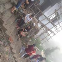 Volunteers coordinated by kuenphen Tshogpa club Coordinator Dechen Wangchuk started the journey from the college gate from 7:30am. Working started off as soon as we reached the spot. The coordinator from the Thelma Lhakhang distributed the work among the volunteers. Some were in the grass cutting team, some in carrying sands and gravels, some in kitchen, some with wood.