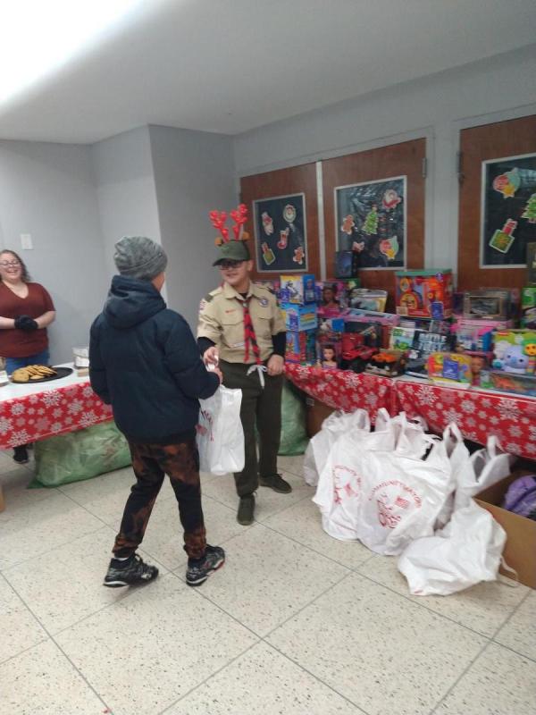 They benefited about 175 to 200 kids with toys that were donated by the community. The parents and guests were very impressed with troop 238 scouts handing over the toys,,that made all the kids very happy and grateful during this Christmas time.