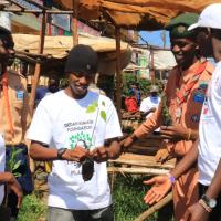 We were joined by 30 scouts,20 non scouts and 5 scout leaders we held an enviromental discussion ,planted 300trees,did a market cleanup and distributed 1,000 seedballs and 100 seedlings We engaged more than 500 people both the market vendors and some community members ,we inspired 30 scouts to join the green war and rehabilitated a dumpsite.