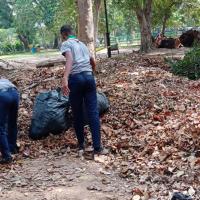 02.30 pm - Depositing the dried leaves in the compost bin