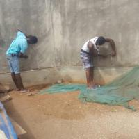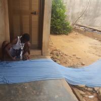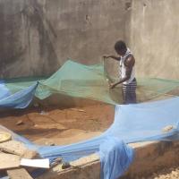 Alors pour ne pas polluer l'environnement et pouvoir construire notre poulailler, nous avons juger utile de recycler les anciens moustiquaires que nous avons utilisées à la maison. Ainsi, nous avons relevé les dimenssions de l'emplacement dédié, nous avons ensuite découpé les différents moustiquaires puis les avons recousu avec des morceaux de fil de fer d'environ cinq (05) centimètres.