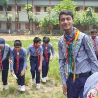 On the occasion of world scout scarf day, the members of Tejgaon Government High School Scout Group carried out clean and tree planting activities in the school.