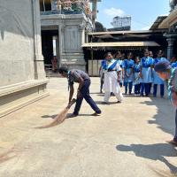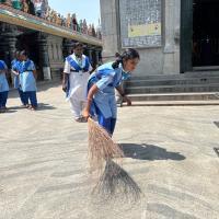 The project was executed by organizing a series of meaningful activities involving students. They exchanged friendship bands, created a rangoli on the 17 Sustainable Development Goals, and performed a skit on stampede awareness. Students also cleaned the Murugan temple premises, distributed rice bags and gloves to sanitation workers, and served lemon juice to the public, promoting service and social responsibility.