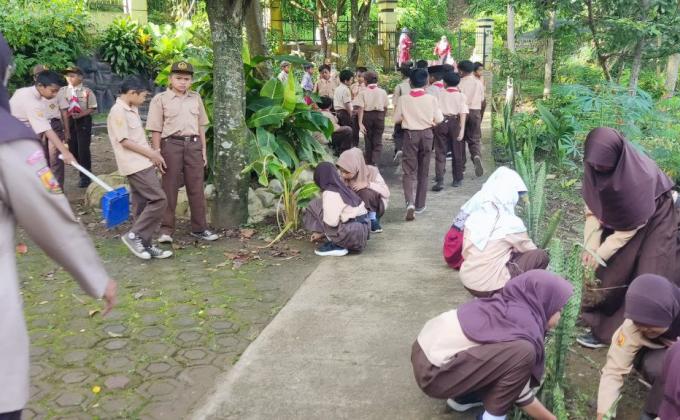 Bakti Pramuka Membersihkan Lingkungan dan Sekolah