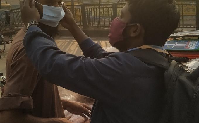 মাস্ক বিতরণ।