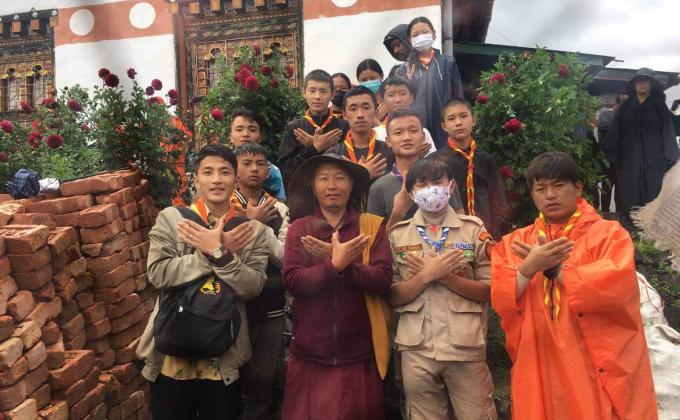 Bhutan youth scout volunteering at Peligri temple.