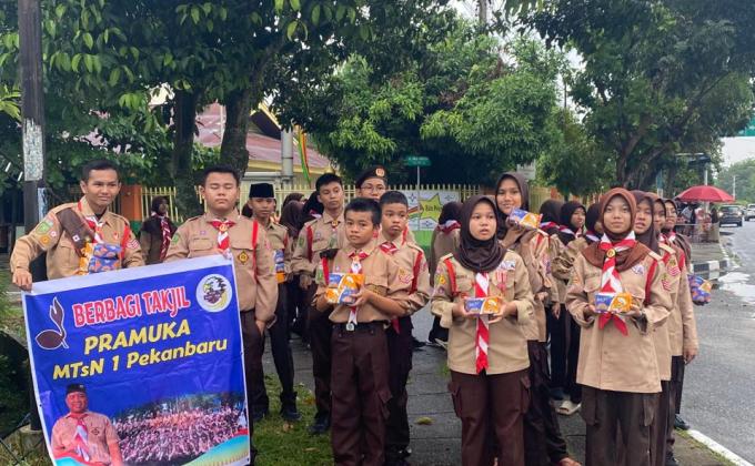 Pramuka MTsN 1 Pekanbaru Berbagi Takjil