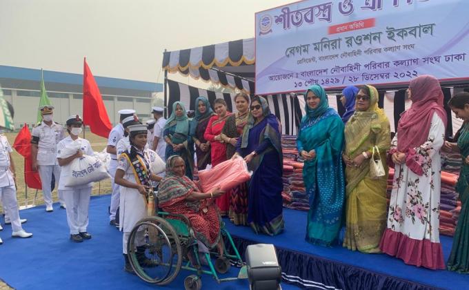 Distributing winter clothing ,food among the poor.