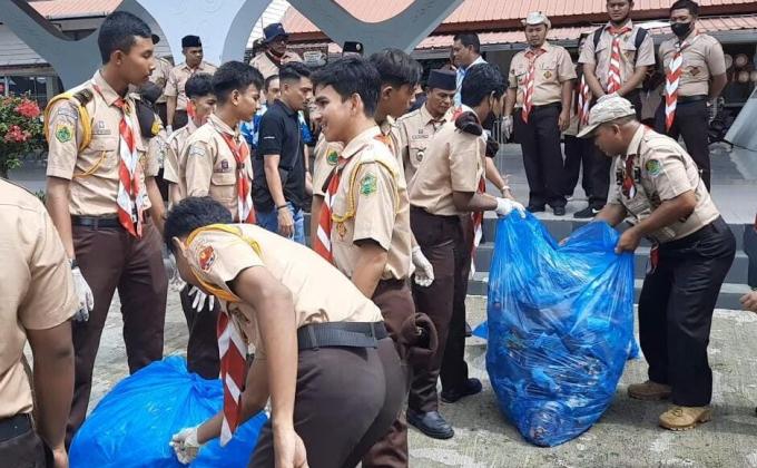 Banda Aceh City's Scout clean up Ulee Lheu beach