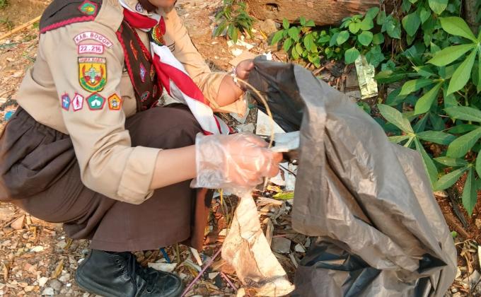 Semangat Pramuka dalam Membersihkan Pantai Kencana