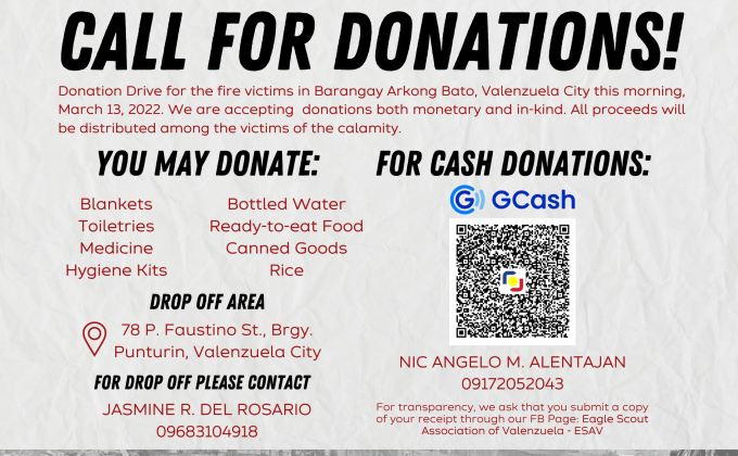 Donation Drive for Valenzuela PH Fire Victims