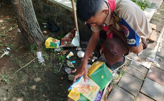 Pramuka Bersihkan Lingkungan Posko Mudik Lebaran