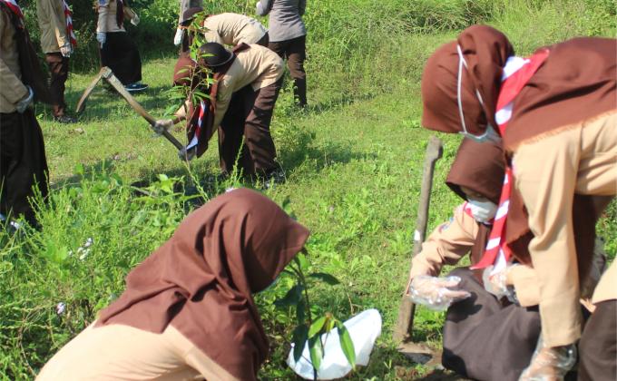 Peringatan Hari Lingkungan Hidup Sedunia tahun 2021 menginspirasi pramuka untuk melakukan aksi penanaman pohon secara serentak di masyarakat.