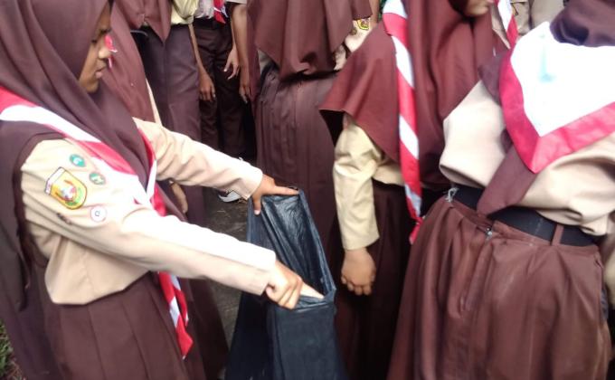 Aksi Bersih Lingkungan Pramuka Garuda MTsN 10 Kng