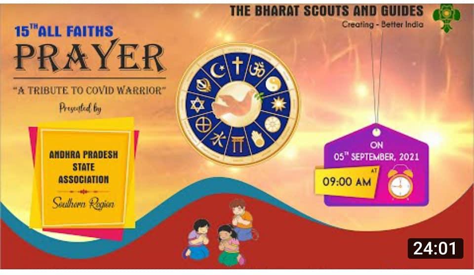 05 sept: The Bharat Scouts and Guides India organizing a series of All Faith Prayers "A Tribute to Covid Warrior" which will run up to 2 Oct. 2021.