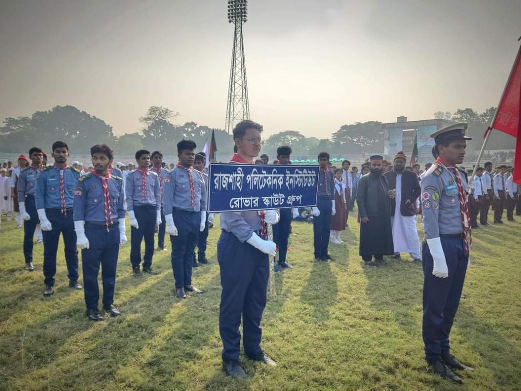 মহান বিজয় দিবস উপলক্ষে, রাজশাহী পলিটেকনিক ইনস্টিটিউট রোভার স্কাউট গ্রুপের কুচকাওয়াজ, ডিস্প্লে প্রদর্শনীতে অংশগ্রহণ ও সেবা প্রদানের স্থির চিত্র