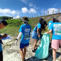 響應SDGS海洋環保的觀念,在聯團夏令營的最後一天,我們即將前往公館國小附近的沙灘進行淨灘活動。沿著海岸線走幾分鐘,可以抵達一片溫暖的沙灘,我與夥伴們順著階梯走到沙灘上,準備開始清理這片被汙染的美景。經過大家的努力,塑膠杯、保麗龍、杯蓋、玩具、吸管等不斷地在麻布袋裡增加,海灘也漸漸變得明亮起來。雖說我們已把部分垃圾撿起,但仍有許多汙染未被清理乾淨,若來此的遊客可以對自己產生的垃圾做適當的處理,也許就能留住正在消逝的美景。