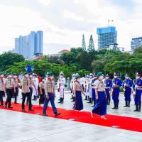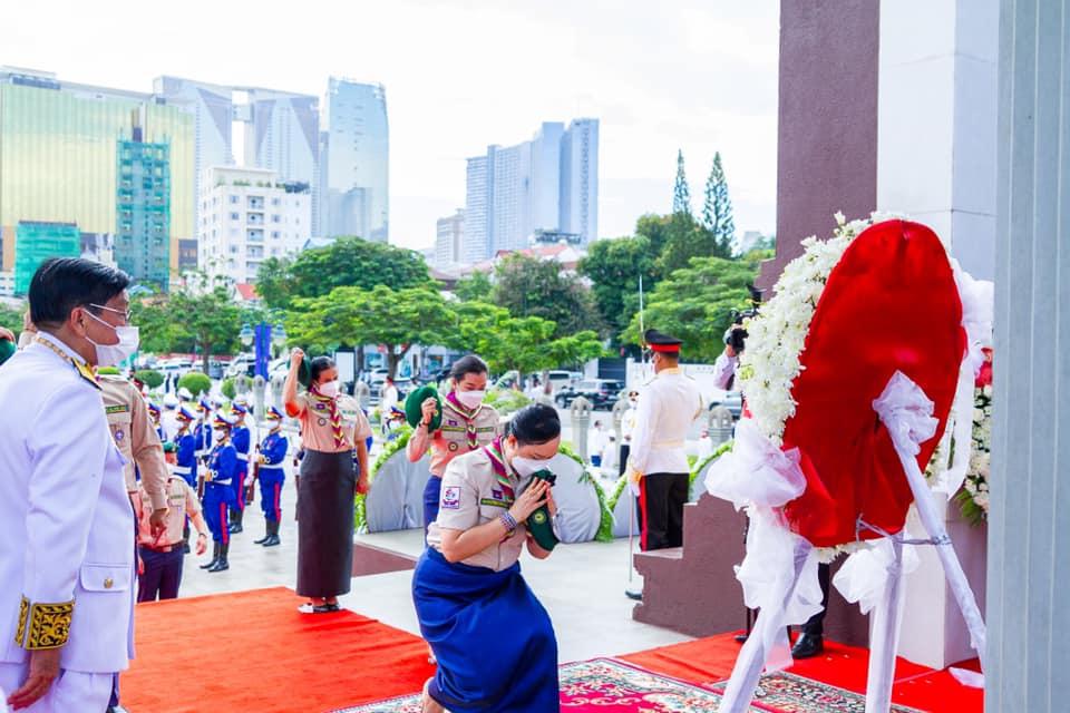 Lok Chumteav Kim Sethany, Vice President of the Cambodian National Scouts, invited and led the members of the Cambodian National Scouts to pay tribute to the 9th anniversary of the death of His Majesty King Norodom Sihanouk, His Majesty the King Father, Independence, Territorial Integrity and Independence. Khmer nation, His Majesty the King.