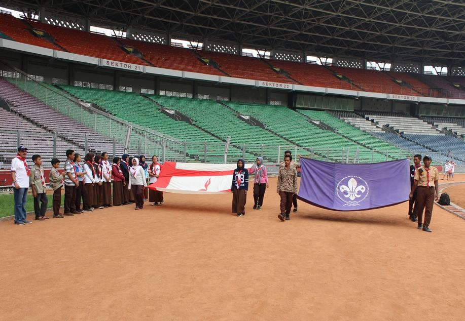 Before it closed and renovated, the “number one” sport stadium in Indonesia, has witnessed that we successfully flown again the WOSM dan the Indonesia National flags Scouts back after 35 years it was hoisted at Cibubur Campsite. We flown the flags with a full Scout pride.