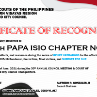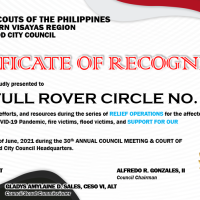 The recognition was given during the 30th Annual Council Meeting of the Boy Scouts of the Philippines Bacolod City Council on June 30, 2021 held via Zoom Video Conferencing.