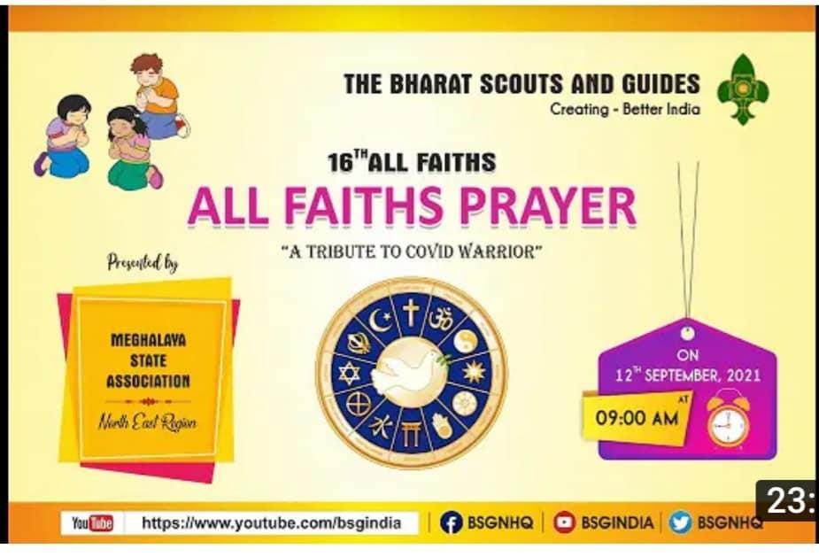 05 sept: The Bharat Scouts and Guides India organizing a series of All Faith Prayers "A Tribute to Covid Warrior" which will run up to 2 Oct. 2021.
