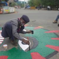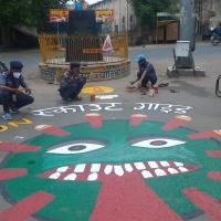 Rajasthan state Scouting Team Doing Oil Painting on Road at Lalsot district Dausa.. Rovers Make a full painting on Road to aware People from Covid19..